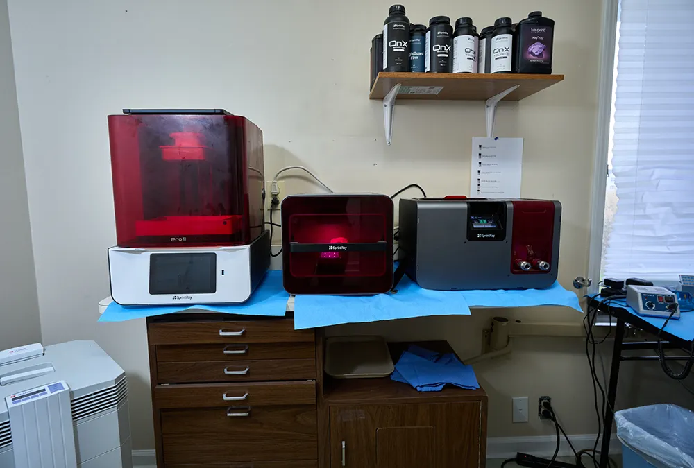 We utilize 3D printers such as Sprintray and Frozen to create customized prosthetics and orthotics with precision and accuracy. These innovative devices enable us to create highly accurate dental models and customized orthodontic aligners, enhancing precision, efficiency, and right here in our practice.